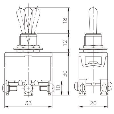 | Тип переключения | on - off - on |