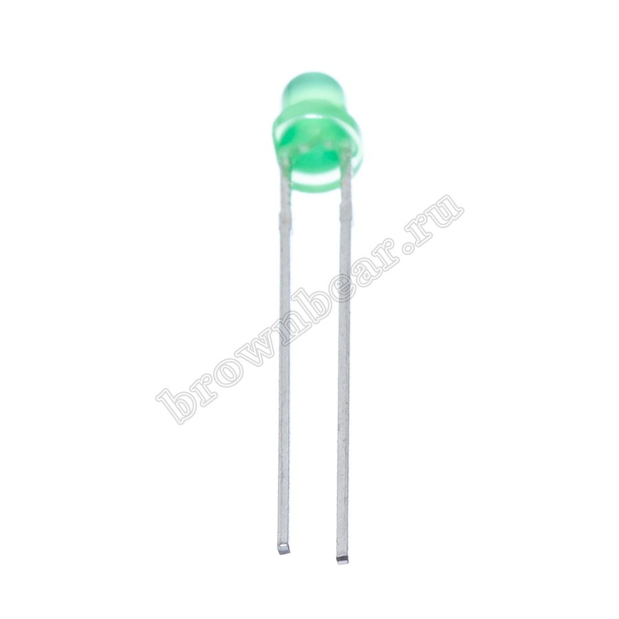 Светодиод индикаторный слаботочный d=3мм, зеленый, 2.2mcd LG2040/T купить в Москве оптом или в розницу в интернет магазине «Бурый Медведь»